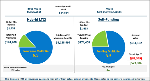 - $1,128,999 insurance benefit vs $523,804 self-funding account value